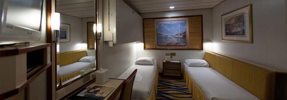 方形的海景窗,兩張單人床,一張臥床及一張單人沙發床,或者是兩張可合并成一張雙人床的單人床,一張臥床及一張單人沙發床;獨立浴室及洗手間,遙控數碼電視機,保險箱,電話,吹風機。